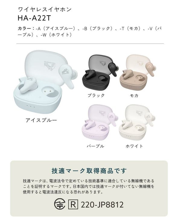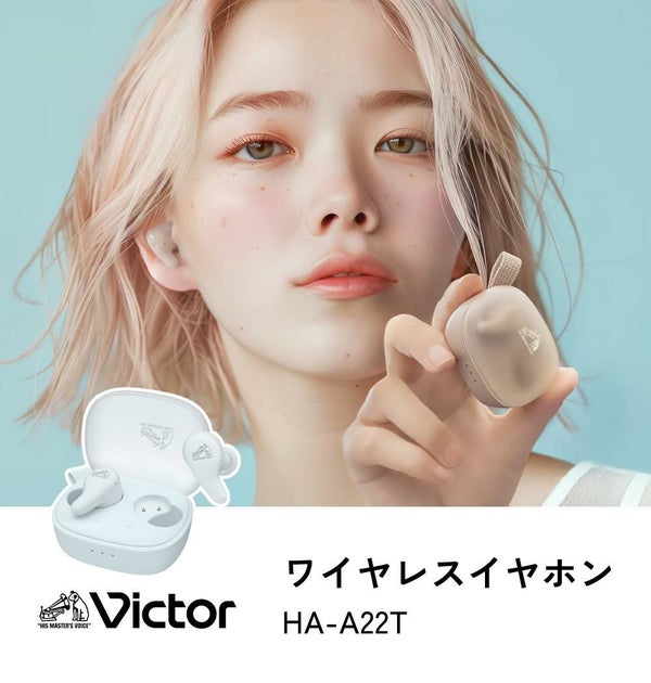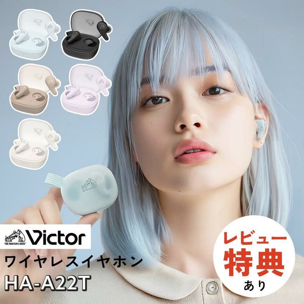 シアーデザインのケースとスフレマット質感が魅力の Victor HA-A22T は、完全ワイヤレスイヤホンで、