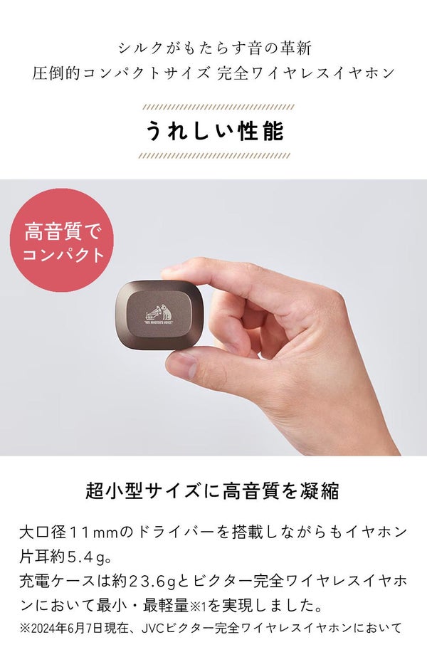 充電ケースは約23.6gとビクター完全ワイヤレスイヤホンにおいて最小・最軽量※1を実現しました。