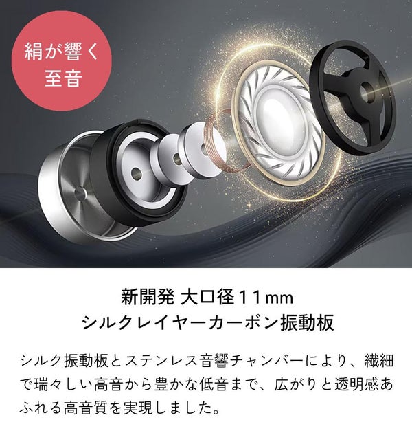 その成分をカーボンコーティングされたベースに付加した大口径11mmのシルクレイヤーカーボン振動板を新開発。