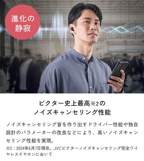 ※2:2024年6月7日現在。当社ノイズキャンセリング完全ワイヤレスイヤホンにおいて