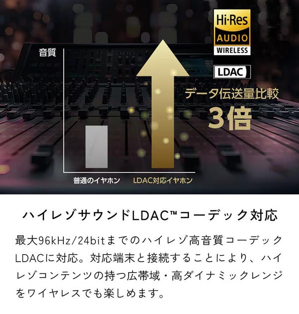 最大96kHz/24bitまでのハイレゾ高音質コーデックLDACに対応。