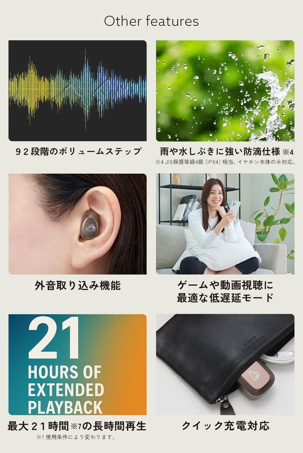※4:JIS保護等級4級(IPX4)相当。イヤホン本体のみ対応。