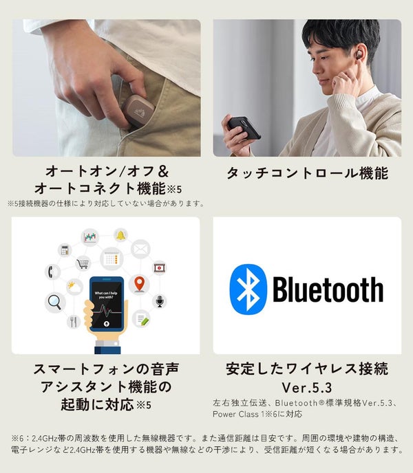 左右独立伝送、Bluetooth(R)標準規格Ver.5.3、Power Class 1※6に対応