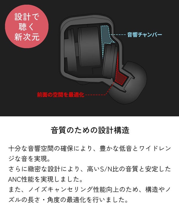 さらに緻密な設計により、高いS/N比の音質と安定したANC性能を実現しました。