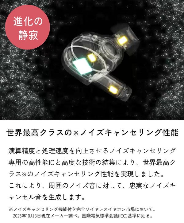 ※ノイズキャンセリング機能付き完全ワイヤレスイヤホン市場において。2025年10月3日現在、メーカー調べ。国際電気標準会議(IEC)基準に則る。