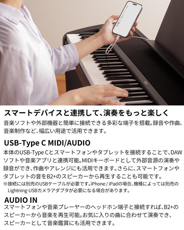 「憧れのピアノを弾いてみたい」「子どもの頃に習っていたけど、また始めたい」そんなあなたにピッタリの電子ピアノ B2+。
