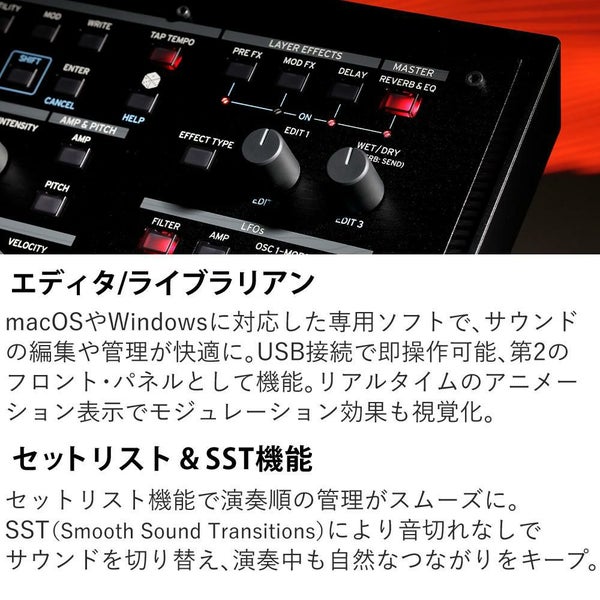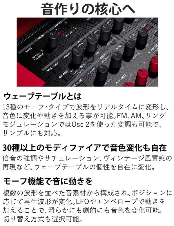 | コントローラー | Mod Wheel、Pitch Wheel、Kaoss Physics、4x Mod Knobs |
