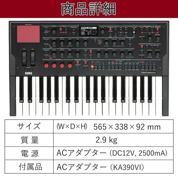 | 鍵盤 | 37鍵(ベロシティおよびリリース・ベロシティ対応) |