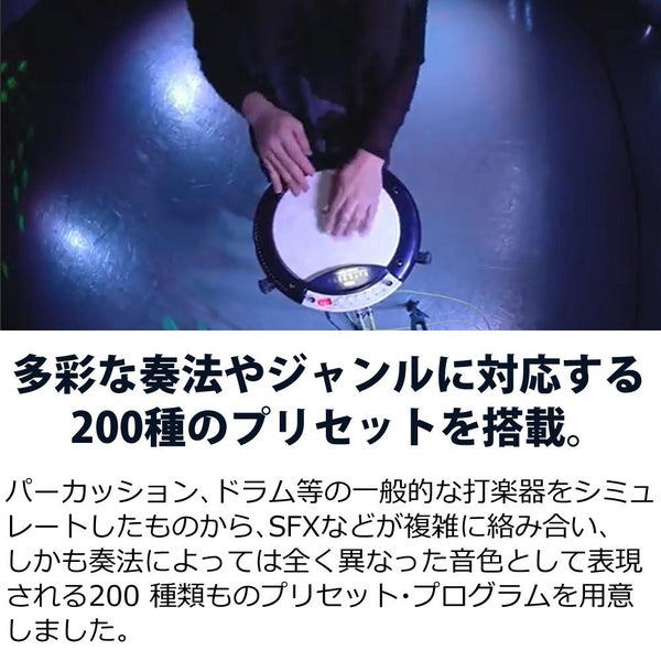 また、スティック、マレット、ブラシなどによる音の違いや、叩くヘッドの位置によって異なるサウンド変化も忠実に再現し、アコースティック・ドラムやパーカッションに匹敵する、高い表現力と広いダイナミック・レンジで演奏できます。