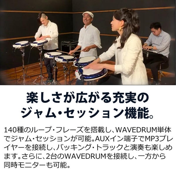 あらゆるジャンルやテンポのループ・フレーズを140種搭載していますので、それに合せてWAVEDRUM単体でジャム・セッションを楽しむことができます。
