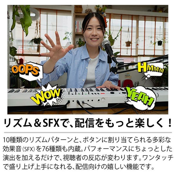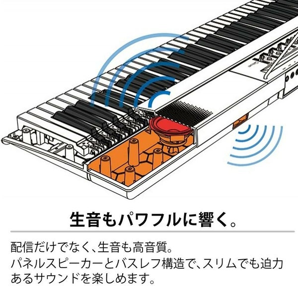 | 付属品 | ACアダプター、譜面立て、ペダル・スイッチ(PS-3)、マイク、マイク・スタンド(アーム、ホルダー、クランプ)、保護シート、マイク・ケーブル(XLR-ステレオ・ミニ・プラグ)、USBケーブル(Type-C)、クイック・スタート・ガイド、「マイク・スタンドを使うときは」(説明書)、ライセンス・カード |