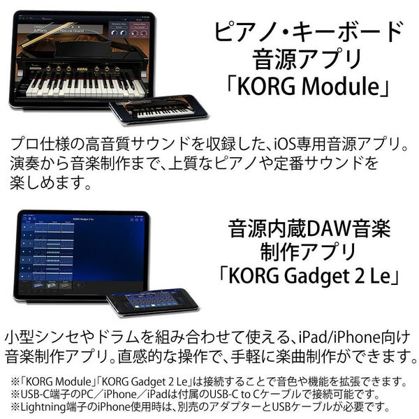 ※「KORG Module」「KORG Gadget 2 Le」はLiano LIVE!と接続して使うことで、音色や機能を拡大して使用することができます。