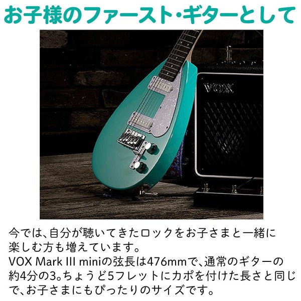 親子でロックを共有しながら、無理のないサイズで一緒に演奏を楽しめるギターとして、VOX Mark 3 mini は理想的な1本と言えるでしょう。