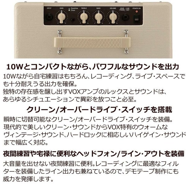 VOXのコンパクトな10ワットギターアンプ。限定カラーのクリーム・ブラウンです。