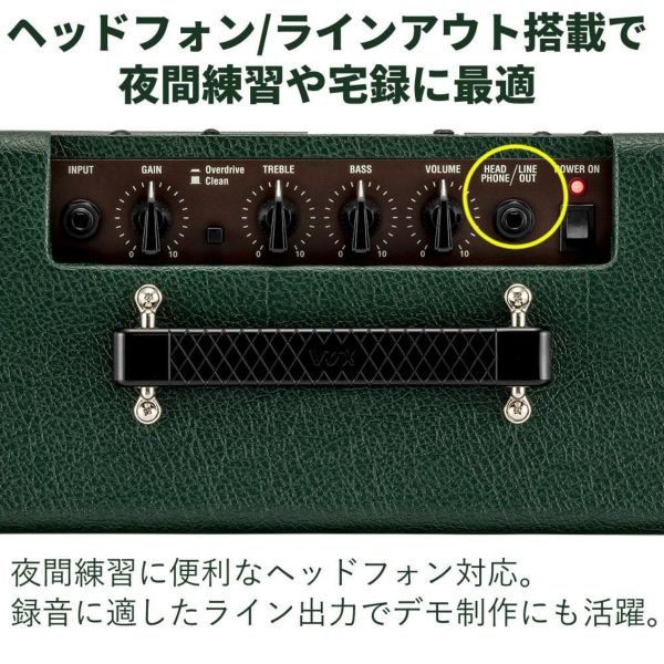 VOXのコンパクトな10ワットギターアンプ。その全てがトレード・マークと言えるVOXアンプのオリジナリティ溢れるルックスをパーフェクトに踏襲。