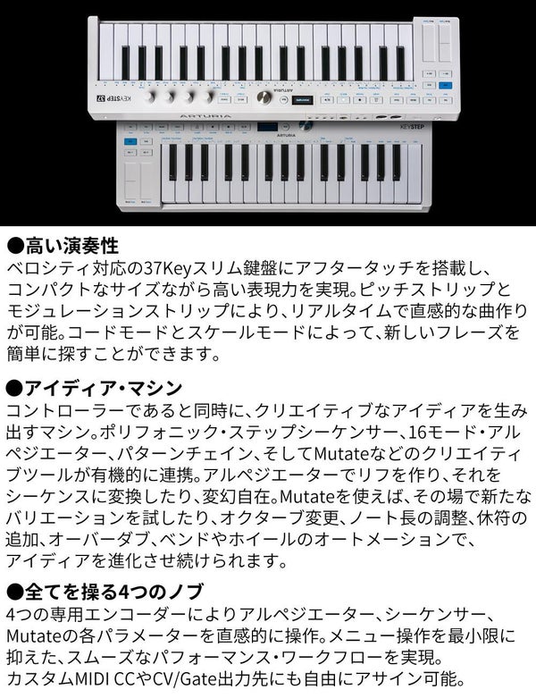 ARTURIA KeyStep 37 MK2 MIDIキーボード ユニバーサル シーケンシング コントローラー