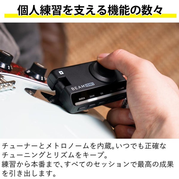 ギターアンプの常識を超える ポータブルアンプ 、 Blackstar の BEAM: SOLO は、 Bluetooth対応 や USB-C対応 により スマホ連携 も簡単。 アプリ連携 により CabRig搭載 の本格的な アンプモデリング や ギターサウンド調整 が可能です。 エレキギター対応 、 ベース対応 、 アコースティックギター対応 と幅広く、多機能アンプ として チューナー内蔵 や メトロノーム内蔵 も完備。 ボーカル録音対応 で レコーディング用 にも活躍。 SpeedDial操作 や XpressFX搭載 で 音作り簡単 、 高音質サウンド を コンパクトサイズ に凝縮した ギター練習用 アンプです。