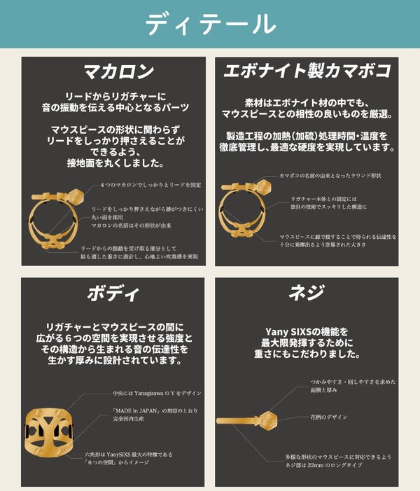 | 機種 | Alto Saxophone/B♭Clarinet 兼用 (エボナイト製マウスピース用) |