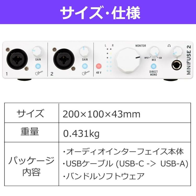 検索ワード:Arturia MiniFuse 2 MiniFuse 2 Arturia オーディオインターフェイス USB-C オーディオインターフェイス ホワイト オーディオインターフェース ミニフューズ 2 レコーディング機材 DTM機材 DTM用オーディオインターフェイス 高音質オーディオインターフェイス USB-C接続 音楽制作機材 入出力2ch 音楽制作初心者向け コンパクトオーディオインターフェイス PC用オーディオインターフェイス Mac対応 オーディオインターフェース Windows対応オーディオインターフェイス ポッドキャスト機材 配信機材 オーディオレコーディング サウンドインターフェース プラグアンドプレイ 録音用デバイス USBオーディオインターフェイス ASIO対応 小型オーディオインターフェイス