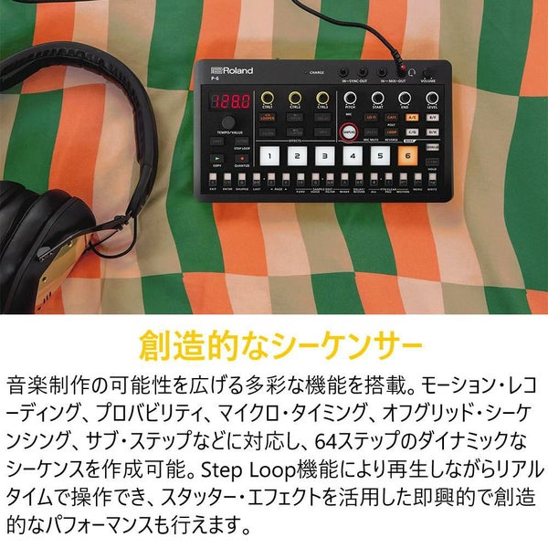 ●P-6 Creative Samplerは、Rolandの定評あるサンプリング・テクノロジーをポケットサイズのガジェットに凝縮し、洗練されたグラニュラー・サウンド・デザインと強力なシーケンサーを搭載しています。