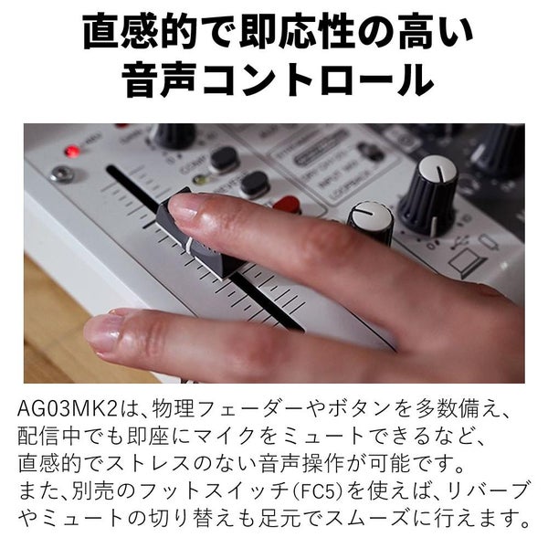 AG03MK2は、人気の配信ミキサー「AG03」の後継機種です。