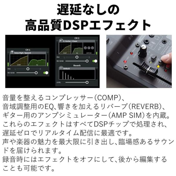 これらはすべて内部DSPチップで処理されるため、遅延ゼロ。