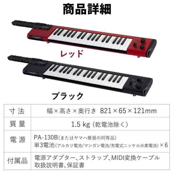 | 付属品 | 電源アダプター、ストラップ、MIDI変換ケーブル、取扱説明書、保証書 |