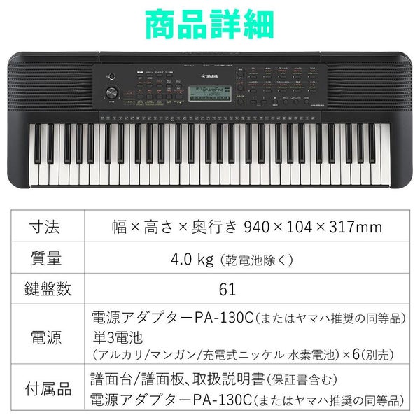 【付属品】譜面台/譜面板、取扱説明書(保証書含む)、電源アダプターPA-130C(またはヤマハ推奨の同等品)