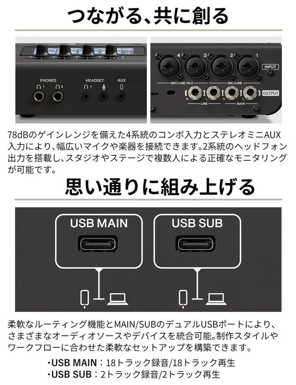 | 録音と再生(USB) | 18トラック録音,18トラック再生 |