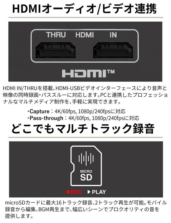 | microSDカード | 最大16トラック録音,2トラック再生 |