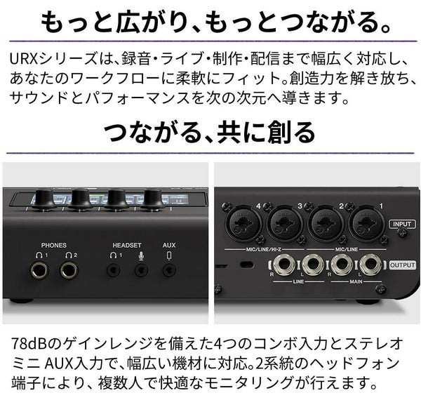 | 入出力コネクター | 4 Combo(2 Mic/Line/3.5mmヘッドセットマイク,2 Mic/Line/Hi-Z)+1 AUX(3.5mm phone) |