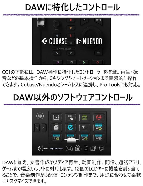 ヤマハCC1コントローラーは、ヤマハ、Steinberg、そしてElgatoの各エコシステムとシームレスに統合し、将来的なアップデートを通じてその機能をさらに拡張していきます。