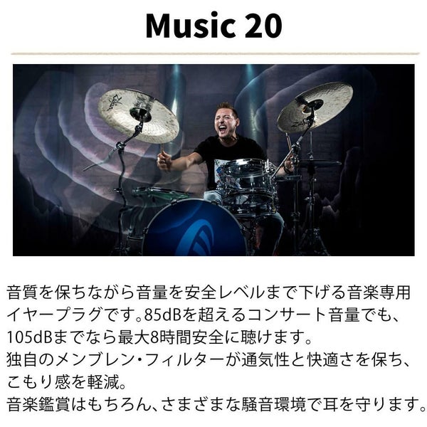 CRESCENDO 耳栓 MUSIC 20 EARTIP S/M/L 音楽用 ライブ向け 防音 高性能 耳せん Crescendo