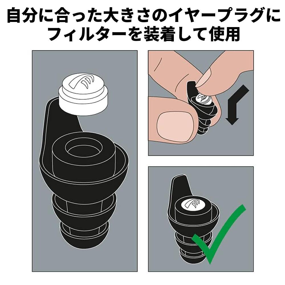 一般的な耳栓と異なり全帯域を均等に減衰させ、原音のバランスを保ちながら音量だけを適切に抑えます。