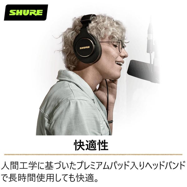 ワイドなパッド入りヘッドバンドと折りたたみ式のデザインはShureの耐久性を備え、究極のリスニング体験を提供します。