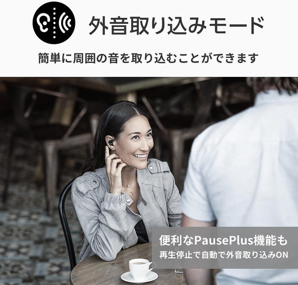 | PausePlus 機能 | 再生停止時に自動で外音取り込み |