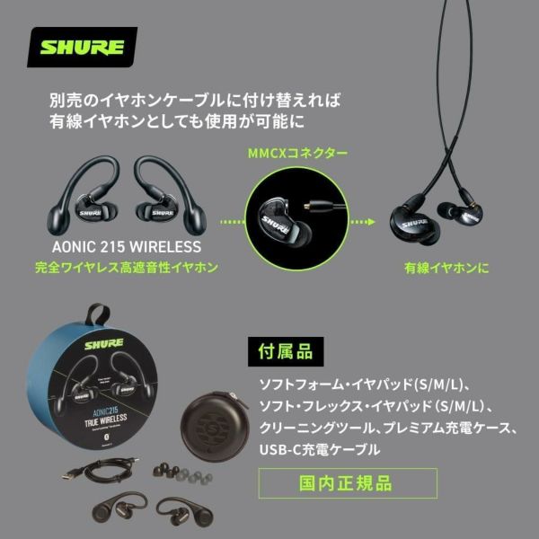 SHURE SE21DY+TW2-A 完全ワイヤレス高遮音性イヤホン AONIC 215