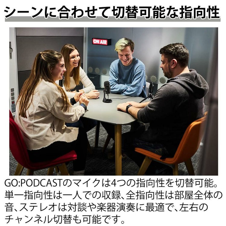 GO:PODCASTはフルレンジのコンデンサーマイクでクリアかつ温かみのある音質を実現。