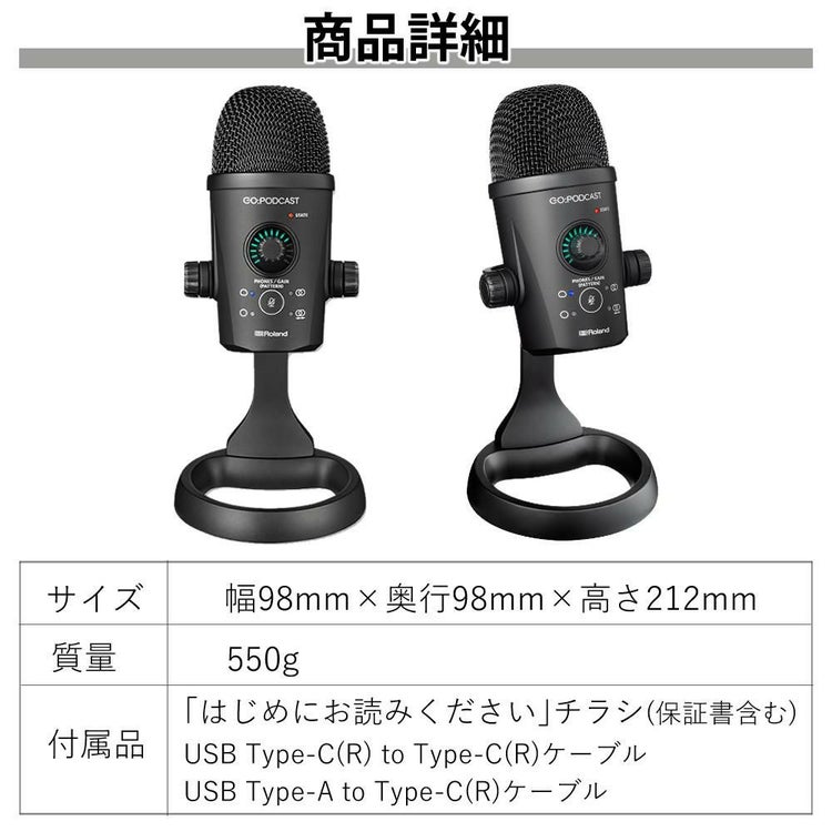 配信初心者からプロまで支持される Roland の USBマイク「 GOPOD CAST 」は、 動画配信 や ゲーム配信 、 ライブ配信 に最適なマイクです。 高品質 な音声収録を実現し、 インタビュー や トーク配信でも活躍。 streamer 向けに設計されたこの microphone は、 クリア な音質で視聴者とのコミュニケーションをスムーズにします。 USB 接続で簡単に使えます。
