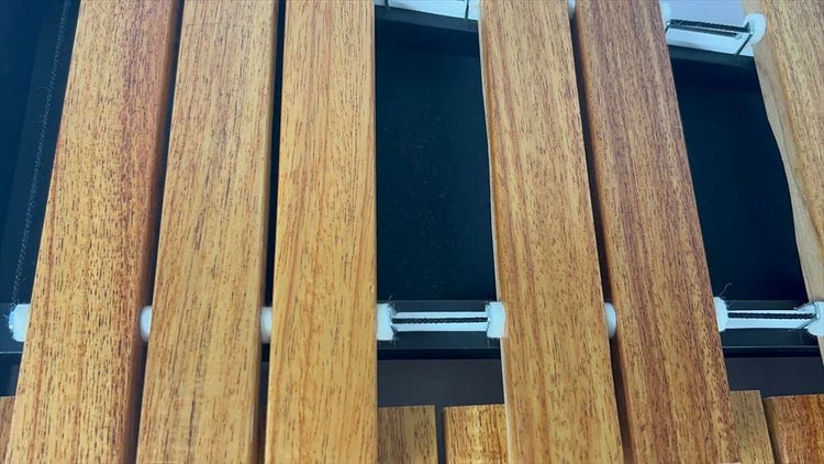 音抜けが良く、クリアーな音色のブラジルカリン材を音板に使用し、このクラス初の反響板付き。