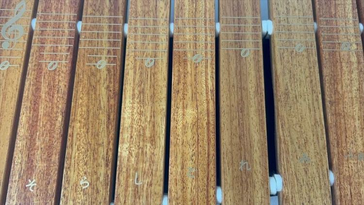 幹音(下の音板)には音符と音階(ひらがな)がプリントされています。