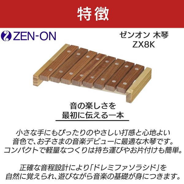 木琴 おもちゃ 子供 ゼンオン ZX8K 8音 バチ付き どれみシール付き 子供用 教育用 (レビュー特典付き)