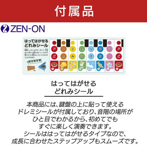 本体には、鍵盤の上に貼って使える「ドレミシール」が付属しており、