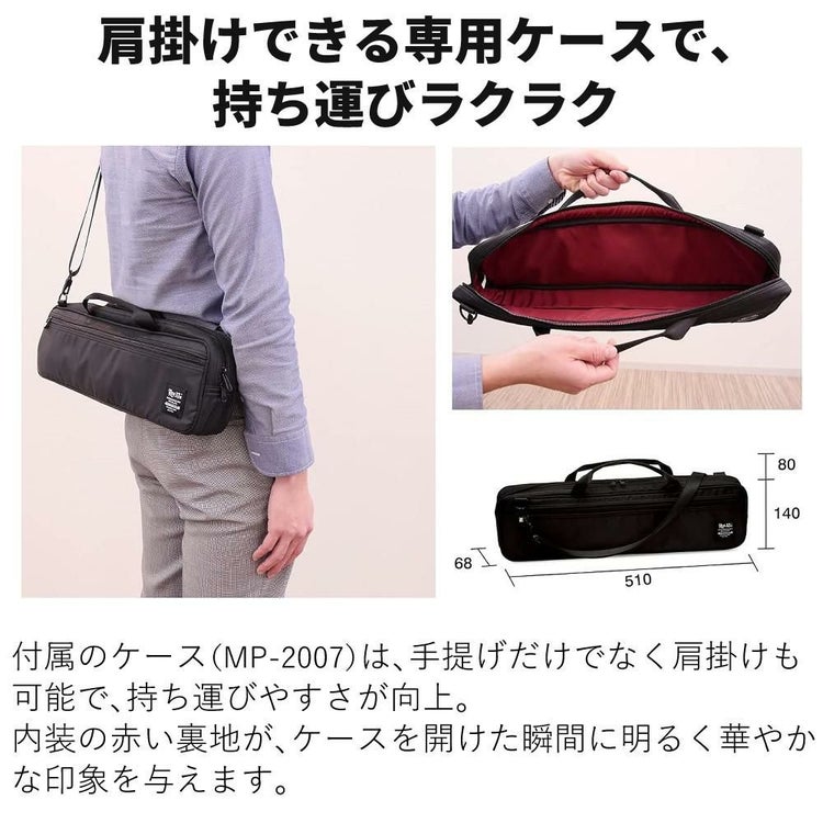 付属のケース(MP-2007)は手提げだけでなく肩に掛けて使うこともでき、より持ち運び易くなりました。