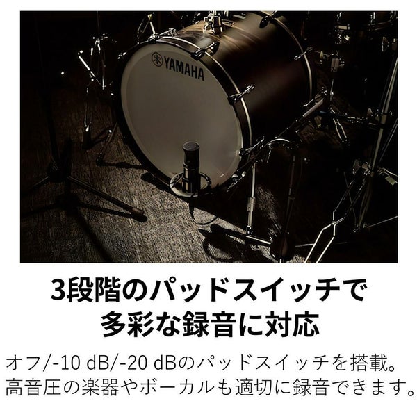 録音対象に応じてスイッチを設定することにより、ボーカルやアコースティックギターはもちろん、ドラム、木管楽器や金管楽器、ピアノなど、強いピークを持つ音圧レベルが高い楽器の録音にも柔軟に対応できます。