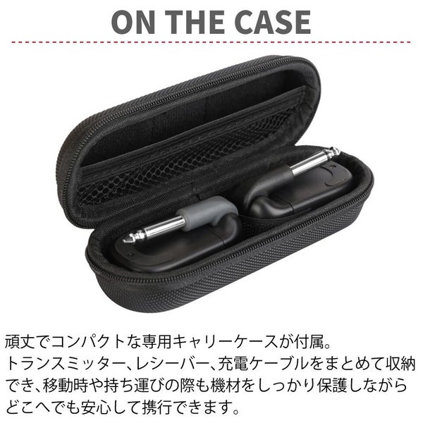頑丈でコンパクトな専用キャリーケースが付属しており、トランスミッター、レシーバー、充電ケーブルをどこへ行くにも安全に携行できます。