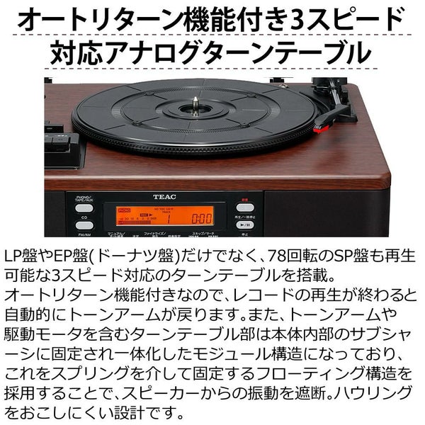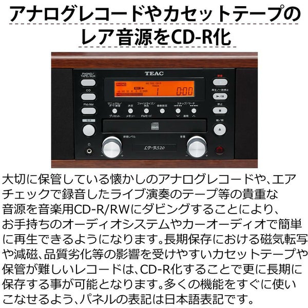 TEAC ティアック ターンテーブル/カセットプレーヤー付CDレコーダー LP-R520