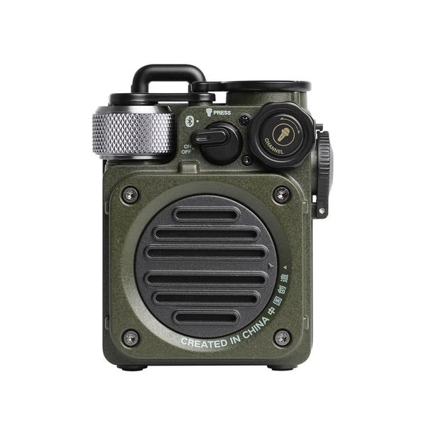 ●ミリタリースタイルなデザインを採用しました。弾薬箱、カモフラージュなど軍隊で使われる無線のようなワイルドなデザインに、金属の重厚さとマット塗装によりミリタリーな質感を再現しています。