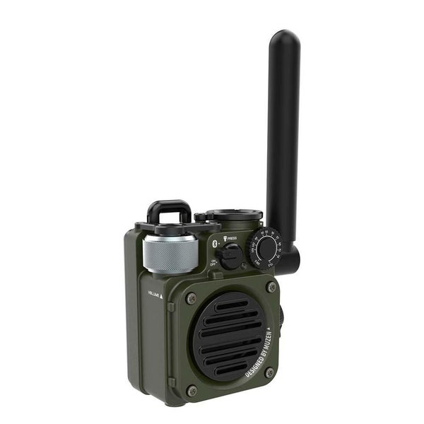 ミリタリー デザイン が魅力の Bluetooth スピーカー は、IPX5 防水 耐水 対応で アウトドア や キャンプ BBQ 釣り など幅広く活躍する ポータブル スピーカー です。1900mAh の バッテリー により や FM ラジオ 、 モバイルバッテリー 機能 を搭載し 防災グッズ としても便利。LED ライト は 懐中電灯 非常用 ライト として SOS 機能 も使用でき、緊急時にも対応します。Bluetooth5.0 による 安定 接続 と 低遅延 で クリア な 音質 を実現し、屋外 でも 室内 でも快適な リスニング を楽しめる 多機能 ワイヤレス スピーカー です。