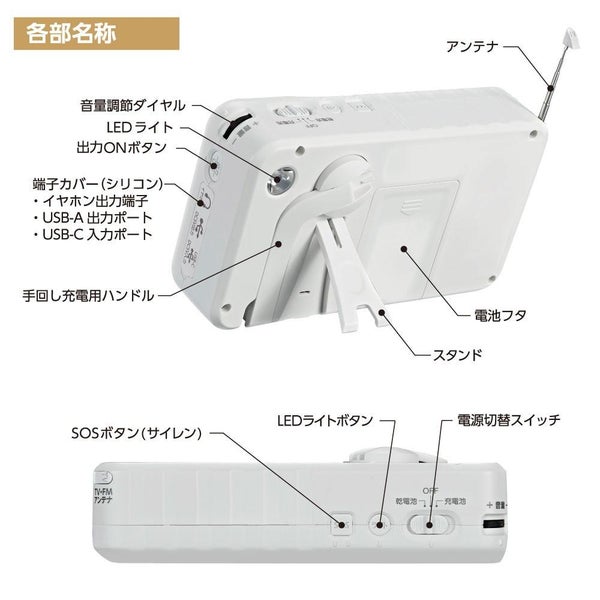 ●FM/AMラジオ・SOSサイレン・LEDライト機能付き。